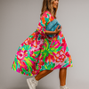 Make a statement in the midi dress, featuring a vibrant oversized floral print on soft, breathable fabric. Designed with a relaxed, A-line silhouette and gathered puff sleeves, this dress offers effortless style with gentle movement. The classic round neckline and bold colors combine for a look that’s both eye-catching and easy to wear.